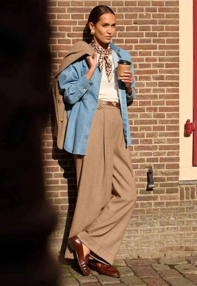 3、阔腿裤+平底鞋:松弛自在,不费力的高级