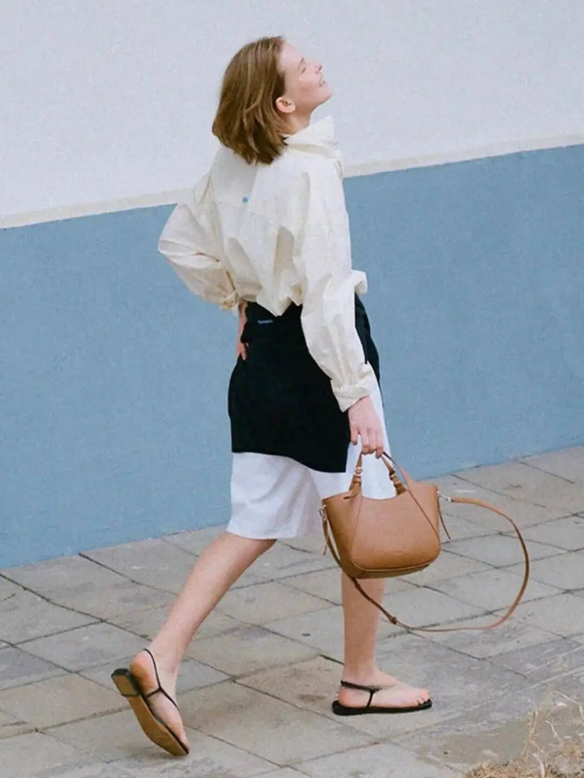 奶油白、燕麦色、雾霾蓝等浅色系,自带春日的温柔滤镜,衣角随意塞腰,慵懒又时髦。