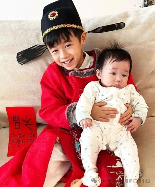 二胎儿子正面曝光,兄弟俩一个像爸一个像妈