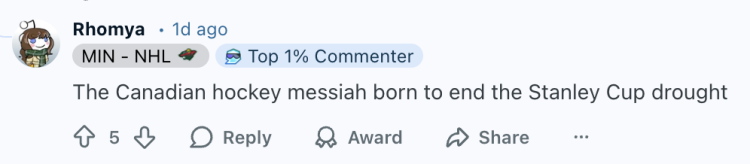 不过很多加拿大人非常惊喜,并表示这个孩子还恰巧出生在复活节的这个周末,也许他将成为加拿大的冰球救世主,生来终结斯坦利杯荒。