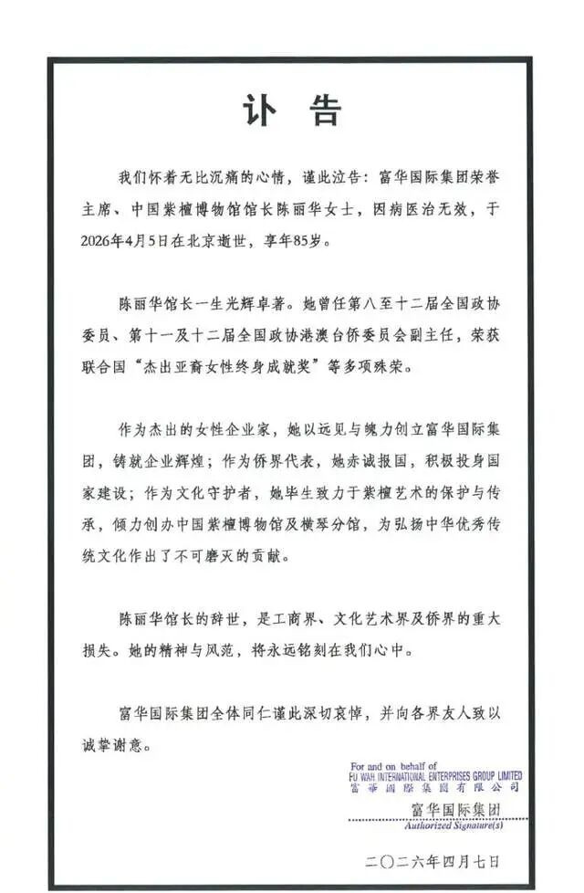 公开的讣告中透露,陈丽华是在4月5号于北京离世的,至于后世安排,暂时未有透露,但根据其生前地位来分析,肯定不会太简单。
