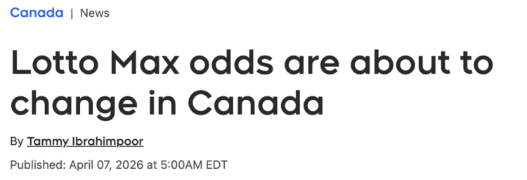 相比之下,普通玩家最能直观感受到的变化可能是中“小奖”的频率会增加。新版 Lotto Max 赢得任何奖项的总概率将从约1/7 提高到 1/5.8.