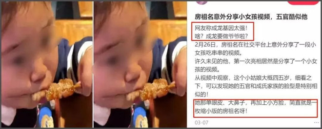 不仅如此,网传房祖名已经有女儿,成龙大哥抱孙女的消息也始终没有澄清。看年纪,房祖名也确实到了当爹的时候,有孩子也实属正常。