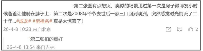 看到成龙和房祖名这么多同框,网友也感慨万千,想到房祖名小时候骑在成龙脖子上,一晃几十年过去了。