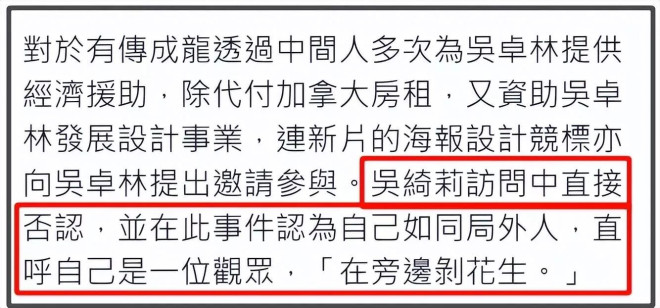 对此吴绮莉则直接否认,还称自己在这当中是“局外人”是“观众”,“在旁边剥花生”,疑似是指责网友编造,自己在一边看热闹。
