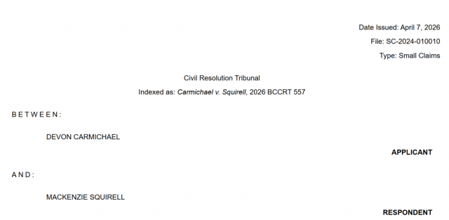 DC傻眼了。合租的人说走就走,这个月的房租谁来付?她一纸诉状递到了BC省民事纠纷仲裁庭(Civil Resolution Tribunal),要求MS赔偿一个月房租$1.100.外加$45的滞纳金,总共$1.145.