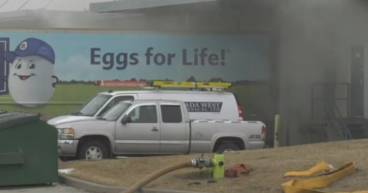 消防队在下午3:40左右赶到东南区56大道3400号街区时,发现一座Burnbrae Farms的蛋品仓库已经被大火吞没。