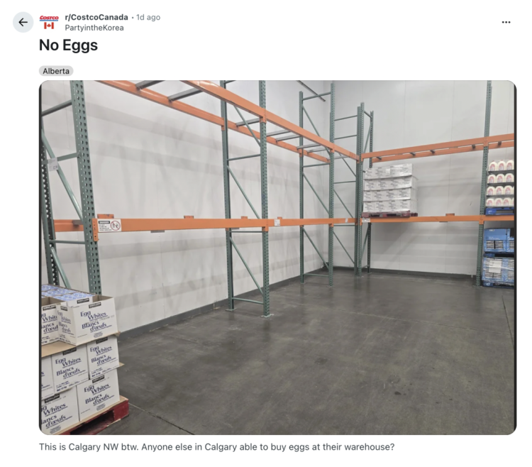卡尔加里还有人能在 Costco 买到鸡蛋吗?”