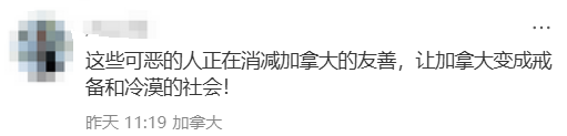 “这些可恶的人正在消减加拿大的友善,让加拿大变成戒备和冷漠的社会!”
