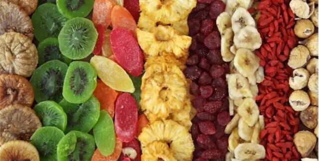晒干的水果中富含浓缩的维生素、矿物质和纤维,但是,一定要注意控制自己吃水果干的量!因为这些水果干在制作过程中,为了良好的口味,都会加入额外的糖,比起新鲜水果,热量高出不止一倍。