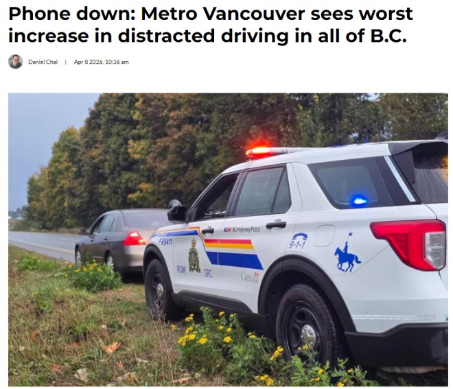 最近一项数据让人有点“心惊”:在整个不列颠哥伦比亚省(B.C.),大温地区的分心驾驶问题,涨得最狠。