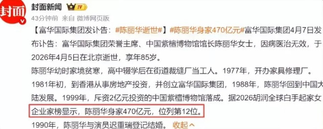 但在陈丽华离世后,关于她的财富、她的婚姻,却在网络上引发了不小谈论。