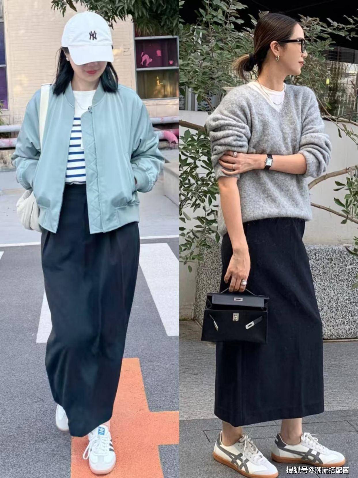 最后对于身材显瘦还完美的女性来说,春天我们还可以选择直筒裙穿搭,尤其是我们选择宽松的版型,像是腹部有赘肉、臂部微肉的女性选择穿直筒裙都能够完美的改善身材缺点,但地直筒裙不管是选择宽松还是合身的版型相对比较窄,相对比较适合身材纤细的女性穿,脚上搭配一双德训鞋瞬间就可以显高显腿长。