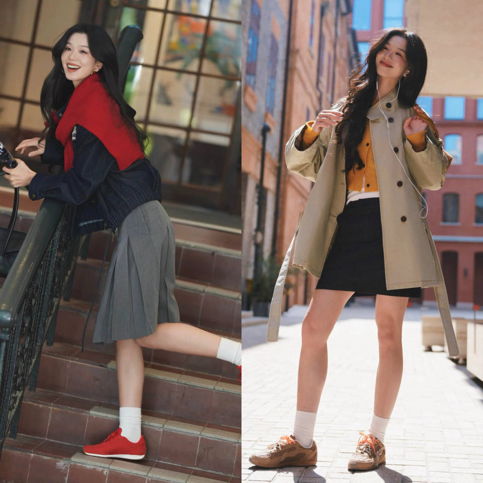 选择的衣服颜色尽量也不要过于花哨,整体配色不超过 3 个色调可以降低出错率。例如用卡其色风衣搭配上黑色短裙,脚踩一双德训鞋,这样的穿搭又飒又美。