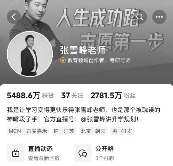 以前张雪峰靠着自己独树一帜的直播风格,可以“一个人顶一群人”。