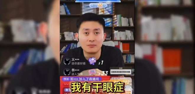 因为自己患有干眼症,再加上直播时有灯光照射,所以难免会频繁眨眼睛。