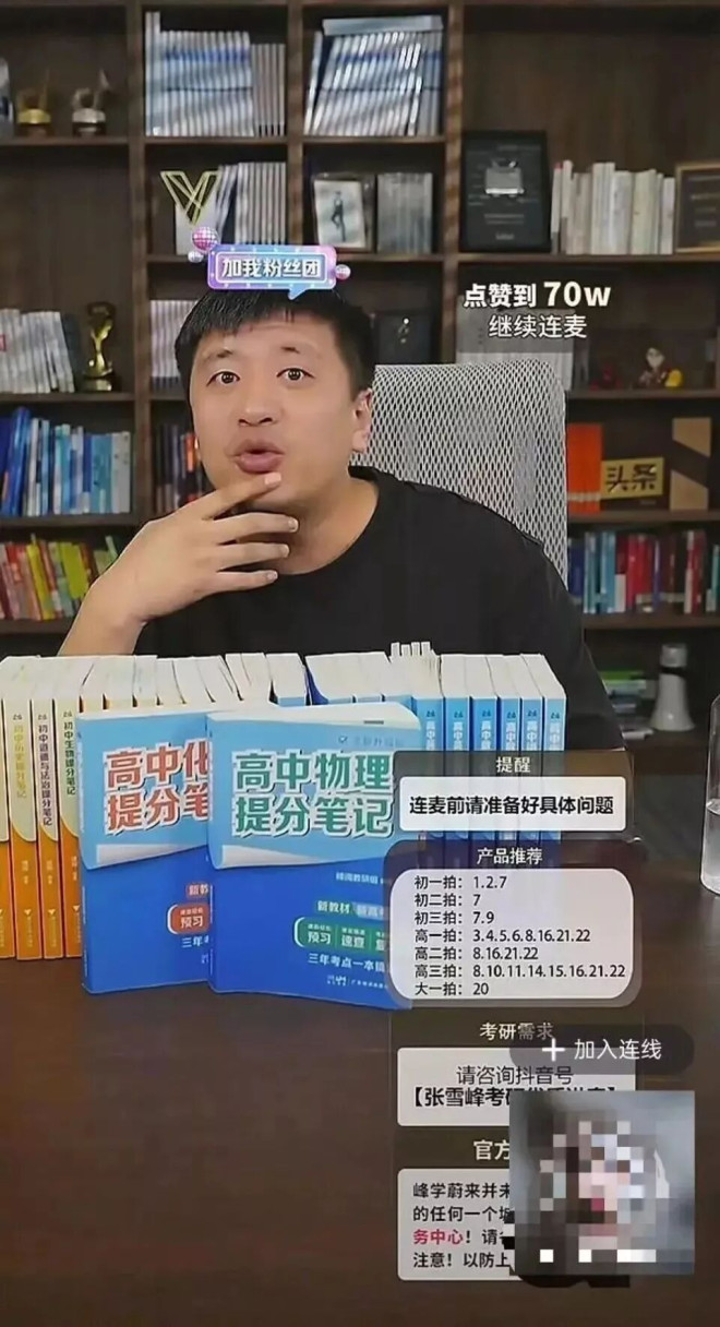 说实话,在直播强度上,你想让他像张雪峰一样天天播,确实也不现实。