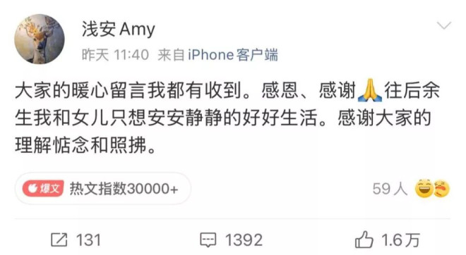 “不知道造谣之人是何居心,只想安安静静地生活,谢谢理解。”