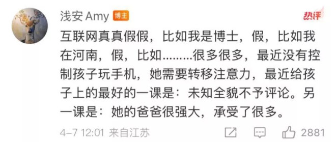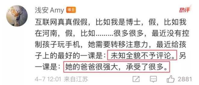 在妈妈李丽婧的发文中,也回应了女儿相关的事情。
