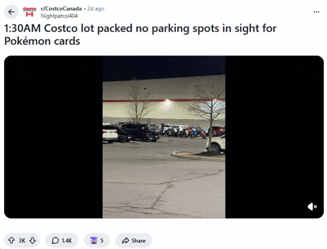 此外,就在今天(4月12日),大多伦多地区列治文山的Costco也上架了这款宝可梦卡牌。华人网友在小红书上透露,大批粉丝和黄牛从昨天晚上11点多就开始排队了。
