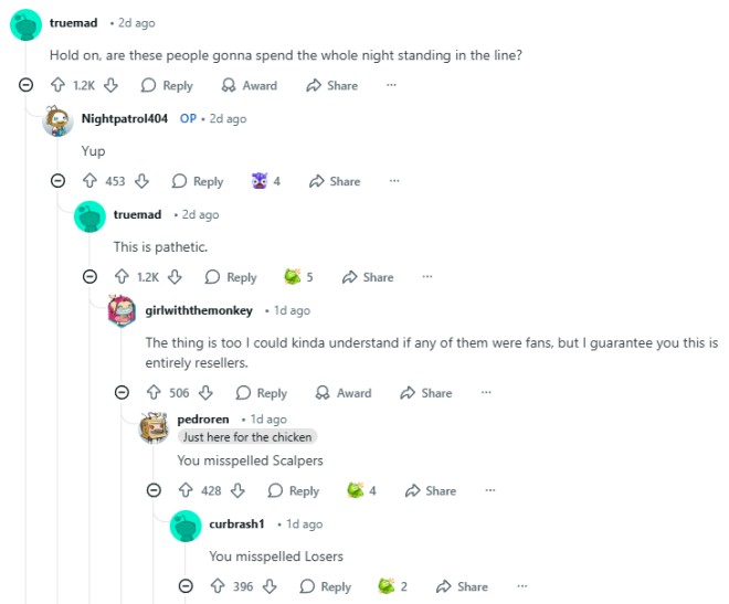 但他们大部分都是“黄牛”。另一位网友甚至称这些人为“Losers”。