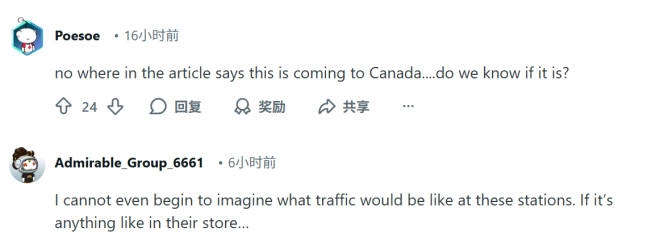 也有网友笑道:"Costco和Buc-ee's如果来了, Petro-Canada、Canadian Tire、Esso、Shell这些老牌油企要丢市场份额了。"