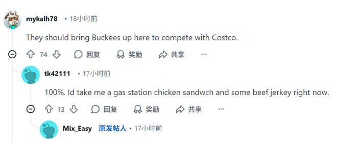 有网友表示:"应该让Buckees进来和Costco竞争。"
