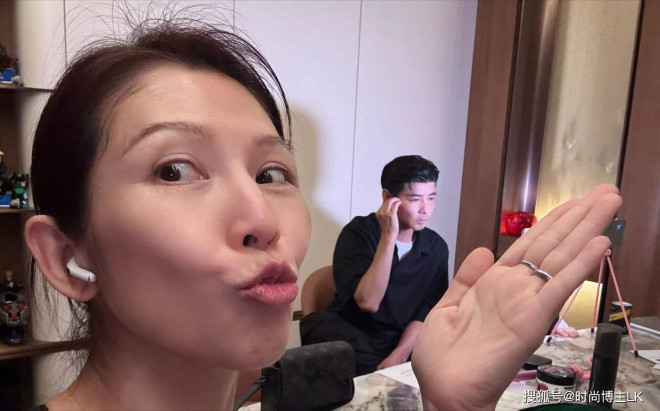 照片里,蔡少芬扎个简单的低马尾,穿着件特舒服的灰黑色T恤,张晋就一件灰色连帽衫,和老婆头贴着头,表情特别专注,不知道的还以为俩人是搁那儿拍大片呢!