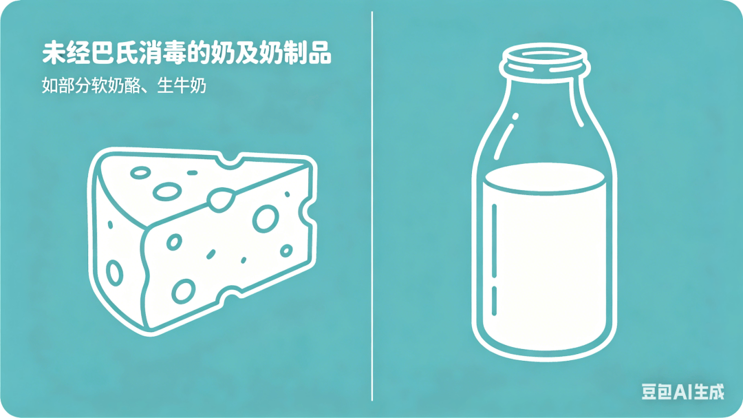 3.规避高风险食物:孕妇、老人等高风险人群应主动避免食用未经巴氏消毒的牛奶及奶制品、软奶酪、未重新加热的即食肉制品、生食海鲜等。
