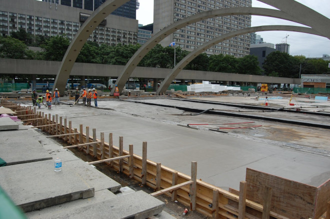 多伦多市政厅广场(Nathan Phillips Square)正在进行大规模翻新工程。图源:51记者拍摄