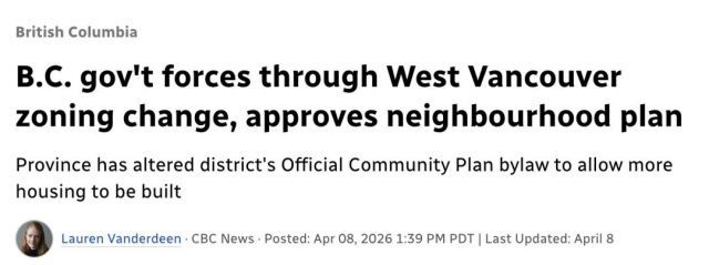 近日,据CBC报道,BC省政府强制通过了西温的分区变更,批准了一项社区规划,以允许在该区域建造更多住房。
