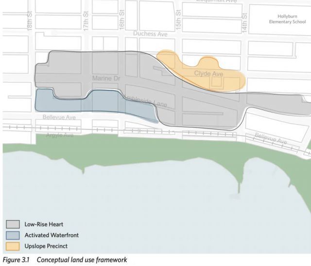 根据省政府公布的规划文件来看,他们将针对Ambleside的三条东西向商业街作出调整,具体措施包括:强化社区的低层“核心”区域、增强其与滨水区的连接,并回应上坡地段的现状。