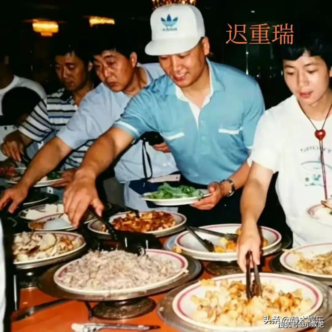 这张照片拍的时候,《西游记》刚播完没两年,迟重瑞演的唐僧已经火遍全国了,那时候自助餐还是新鲜玩意儿,不少人进去都想着多夹几样好的,生怕亏了。