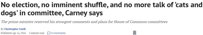 加拿大总理卡尼表示,目前不会举行全国大选,也不会马上进行内阁改组,并将加强对议会委员会的控制,以防止反对党议员在委员会上“作秀”或讨论无关紧要的话题。