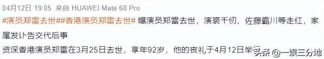 4月开始,去世的名人就格外多,仅昨天一天,就有两个大家被所熟知的人发布了讣告。