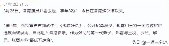 经过证实后才得知,原来他早在3月25日就已经去世了,昨天是他的追悼会。