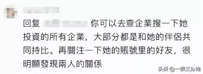 两人的关系也不仅仅是伴侣这么简单,这位爆料者还让大家去搜索一下何超蕸投资的企业,大部分都是她和这位伴侣共同持比的,她们之间还是合作伙伴。
