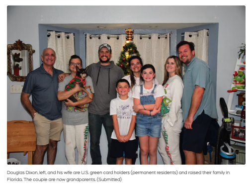 61岁的Douglas Dixon,是一名持有绿卡的加拿大人,已经在美国生活超过20年。他于2005年从蒙特利尔搬到佛罗里达湾岸地区,在当地组建家庭,如今已经成为一名祖父。