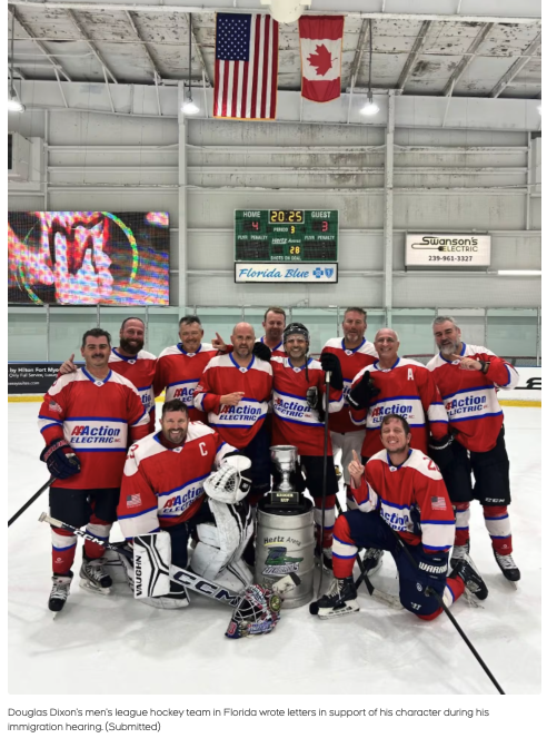 3月底,Dixon迎来了最终移民听证。他的律师提交了14封来自冰球队队友的推荐信,称他“慷慨、善良”、“愿意为他人付出一切”。但尚不清楚法官是否阅读了这些材料。