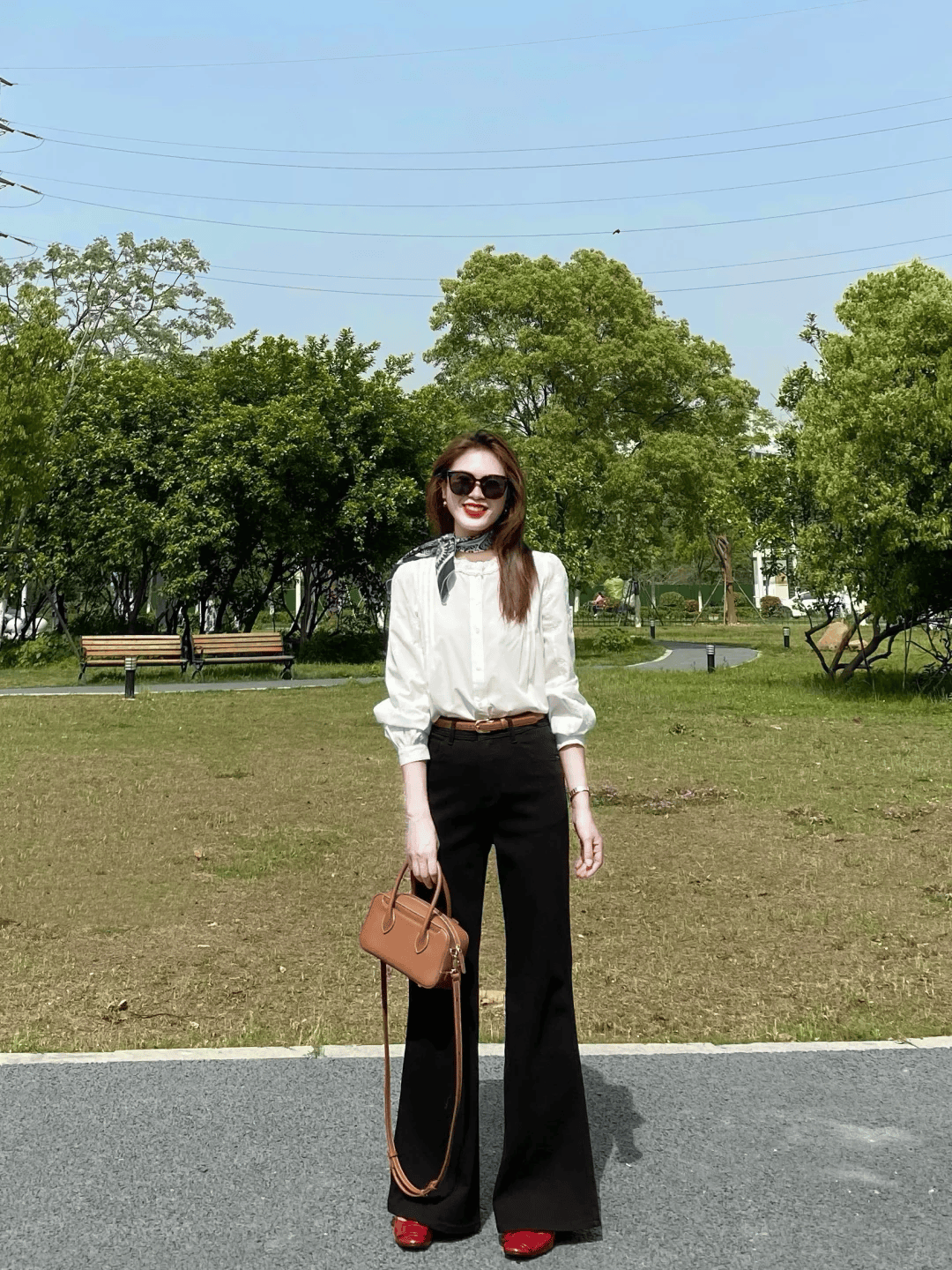 比如就拿白衬衫来说,初夏季节想要穿出与众不同的感觉,就要学会打破常规,正常来说,白衬衫也属于比较百搭的单品,但是如果选择与烟管西裤组合,好像差点意思,也显得太过于通勤风了,那么不妨试试黑色微喇牛仔裤,高腰款+棕色腰带,轻松穿出大长腿。