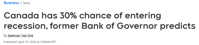 一位前加拿大央行行长表示,受全球经济压力影响,加拿大有约 30% 的可能性陷入衰退。