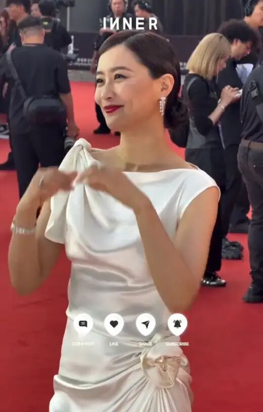 现场生图中,她因肌肤通透亮泽被网友高频形容为“白到发光”,与礼服形成视觉呼应,增强了整体惊艳感。
