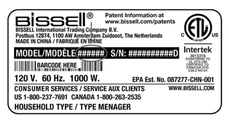 如何检查:你可以将机器翻转过来,查看底部的产品额定值标签贴纸。型号数字会标在标签上一条明显的黑色粗条区域内。如果你的型号匹配,请立即停止使用!