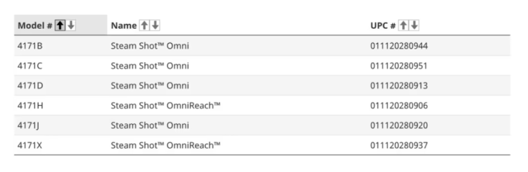 本次召回涵盖的必胜品牌 Steam Shot 系列型号包括: