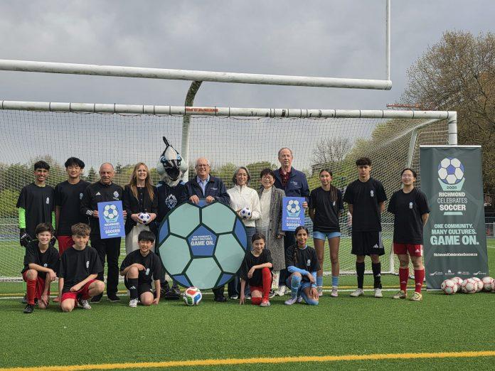 列治文市政府、列治文旅游局及列治文酒店协会周二在Minoru体育场共同宣布为期6个星期的“Richmond Celebrates Soccer”活动安排,将于 6 月 12 日以“World Soccer Day”嘉年华揭开序幕,并于 7 月 19 日以‘Signature Event’闭幕,期望向国际展现列治文充满活力的一面。”。