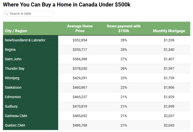 具体来说,如果一个城市平均房价低于50万加元,就默认首付10万;高于50万的话,就按20%首付来算。