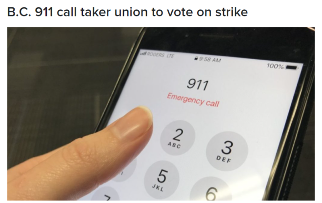 卑诗省(BC省)911紧急电话系统,可能即将迎来一次重大劳资风波。