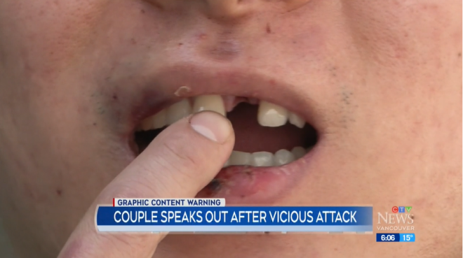 大温亚裔情侣突遭袭击, 门牙被打飞! 只因说母语